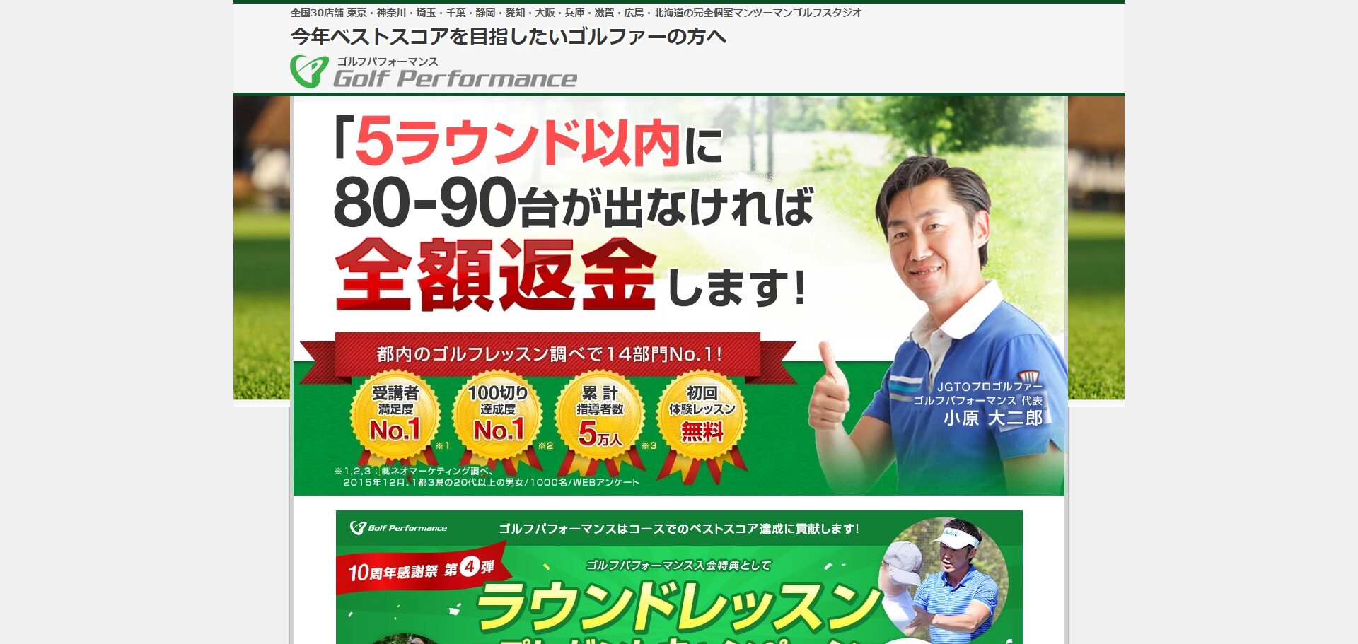1万円相当のレッスンを3千円で体験、との事でしたが、アイアンで3球、ドライバーでは1球のみの計4球。軽いアドバイスをされただけで、時間にして10分程度。ビックリしました。