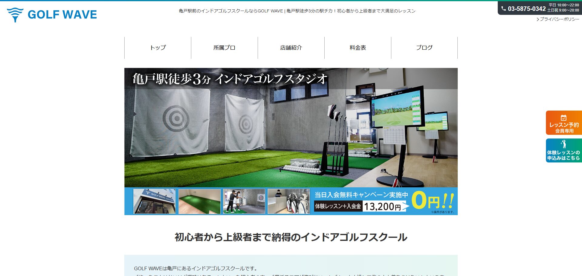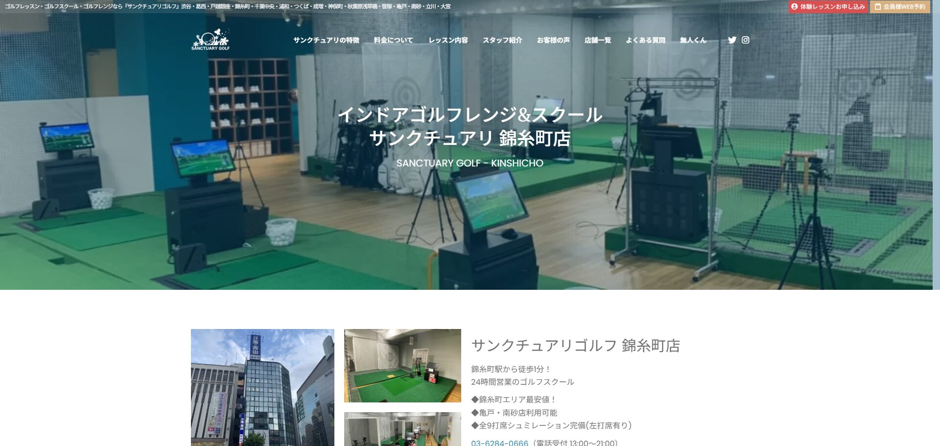項目 GOLF WAVE 亀戸 ステップゴルフ亀戸店 インドアゴルフレンジ Kz 亀戸店 サンクチュアリ錦糸町店 スコアアップゴルフ錦糸町 SMART GOLF 両国店 サングッドゴルフ練習場 B-GOLF 錦糸町 スポーツプラスゴルフレッスン亀戸 アーバンウェストゴルフ