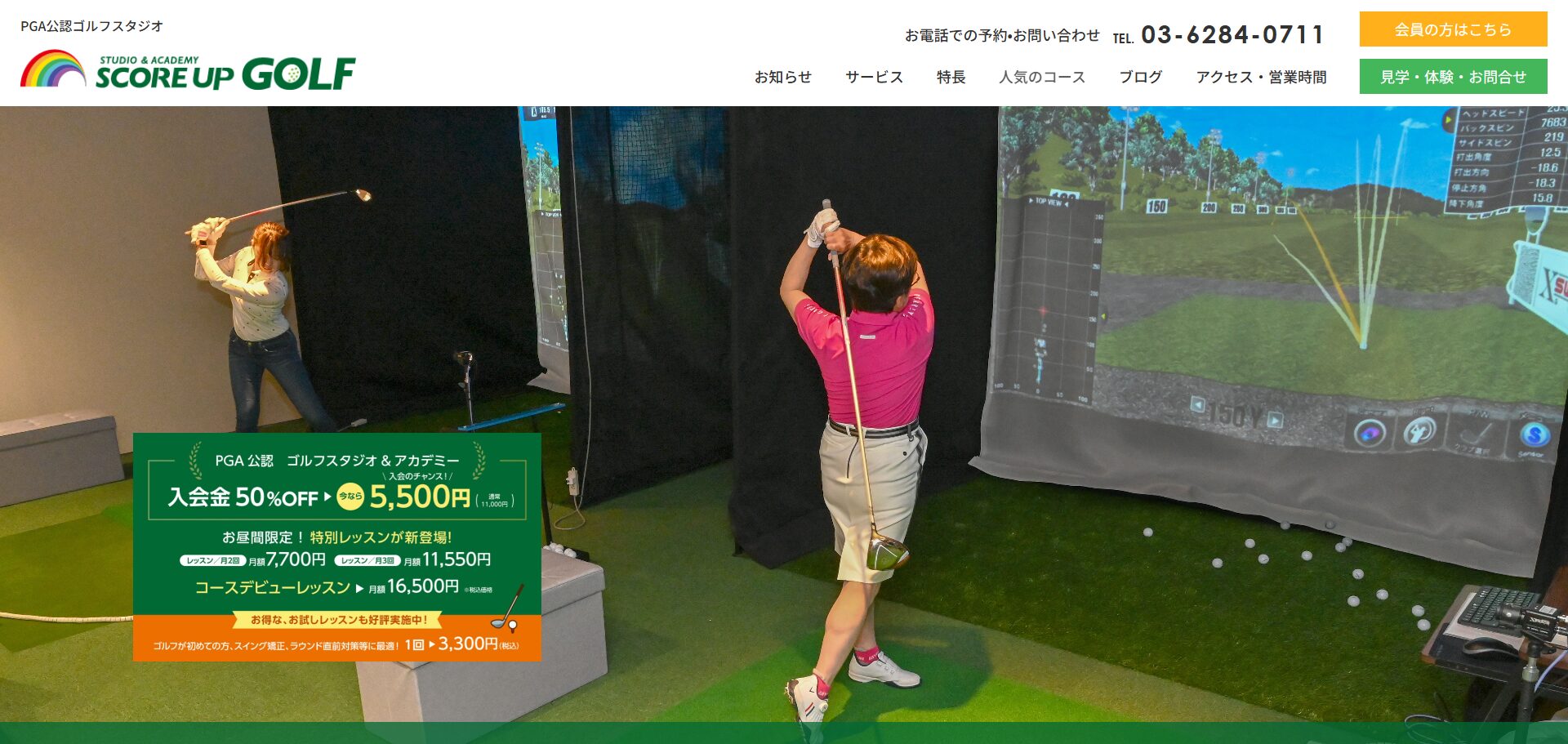 また、駅近やゴルフクラブやシューズなどの無料レンタルなど、初心者でも通いやすい環境が整っている施設が多くあります。